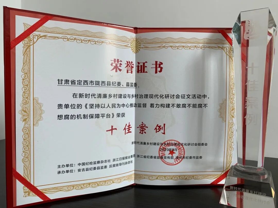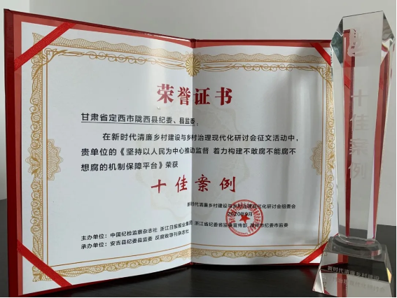 9月19日至20日,新时代清廉乡村建设与乡村治理现代化研讨会在浙江省湖州市安吉县举行。陇西县推送的《坚持以人民为中心推动监督着力构建不敢腐不能腐不想腐的机制保障平台》被评为“十佳案例”。县委常委、县纪委书记、县监委主任张文卿受邀参加会议、介绍经验做法并领奖。