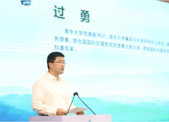 ▲ 图为清华大学党委副书记、廉政与治理研究中心主任、国家监委特约监察员过勇点评照片