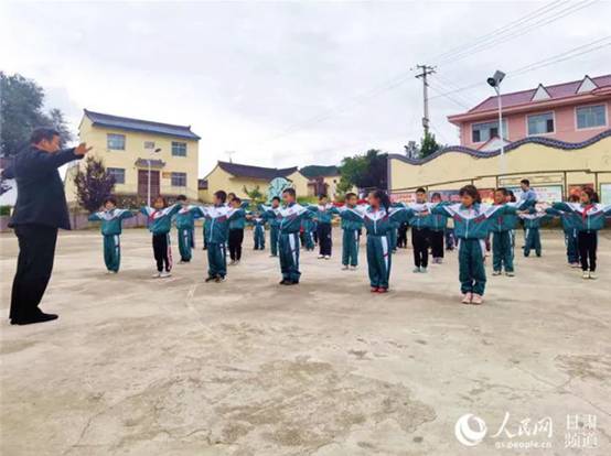 红崖村小学门前的文化广场,孩子们正在上体育课。高翔摄